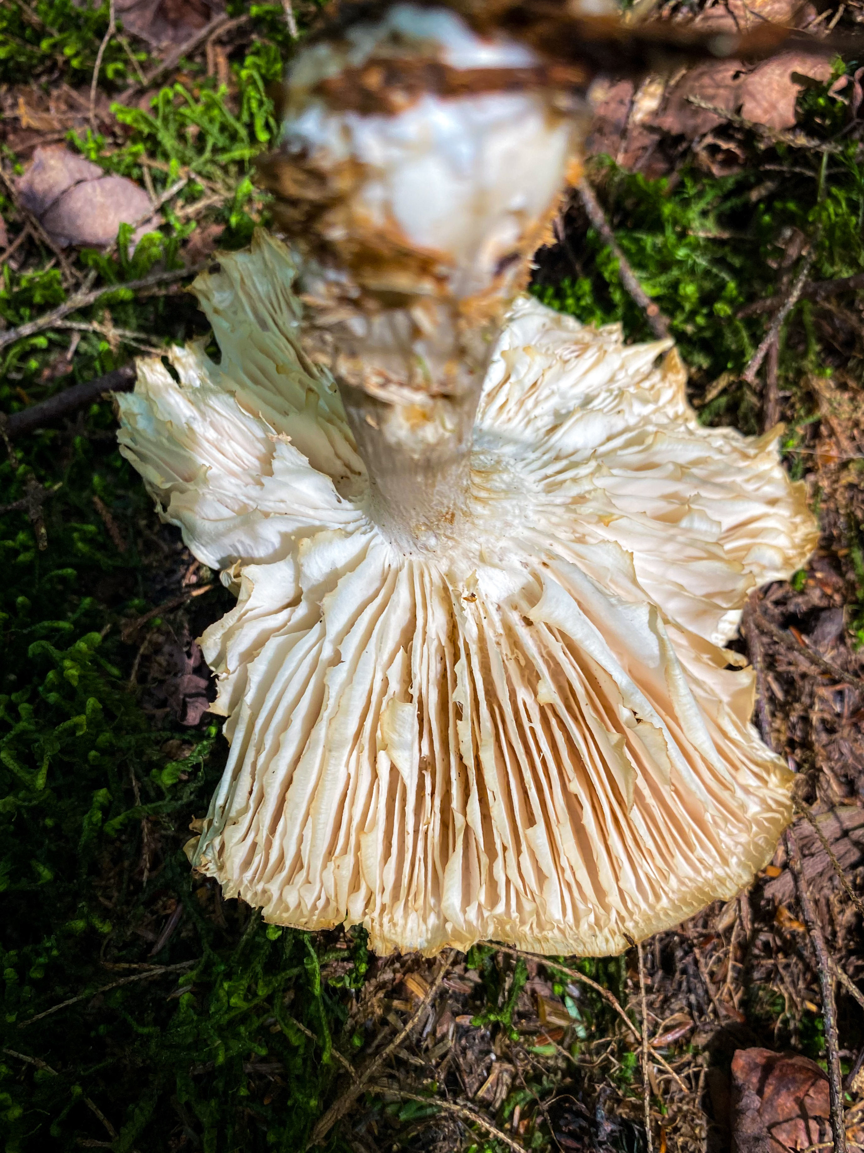 • Gills Attached; white; broad; edges uneven to ragged, appearing eroded